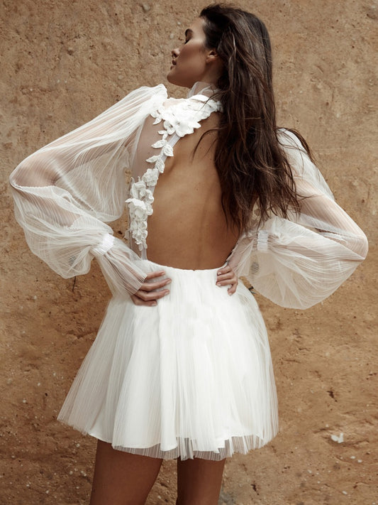 Vintage Lace Applique Bridal Wedding Gown Dress with Low Back