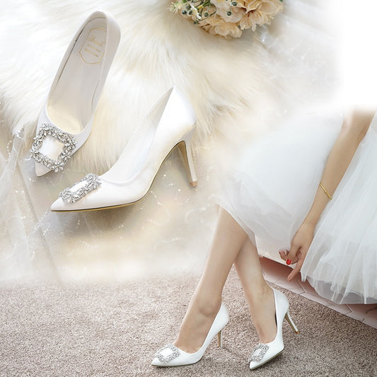Champagne Satin Pumps with Side Rhinestone Embellishment (7 cm height)