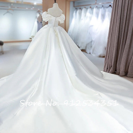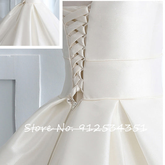 Satin Ball Gown Wedding Dress Off the Shoulder Simple Robe De Mariee Lace Up Back Fashion Abito Da Sposa