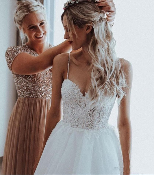 Backless Lace Wedding Dresses with Spaghetti Straps with A-Line Silhouette
