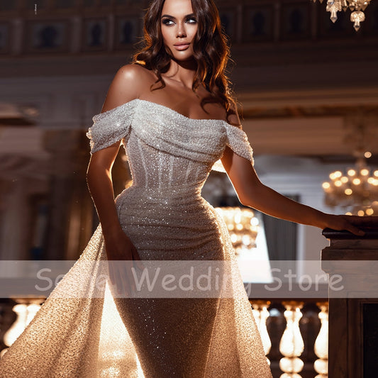 Georgeos Sparkle Wedding Dress Off-The-Shoulder Simple Mermaid Wedding Gown