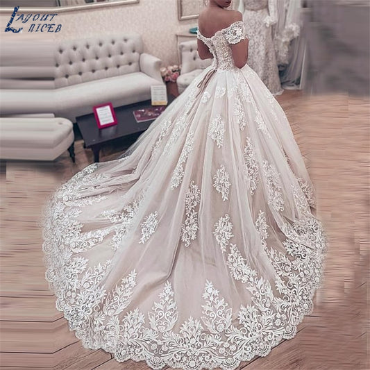 Off the Shoulder Princess Ball Gown Wedding Dress with Lace Applique