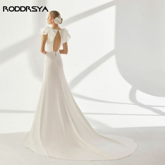V-Neck Ruffle Cap Sleeve Bridal Gown with Open Back