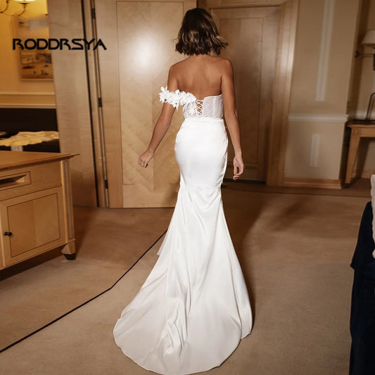 Romantic One Shoulder Sheath Wedding Dress Boho High Slit Appliques Bridal Gowns 2022 Custom Made