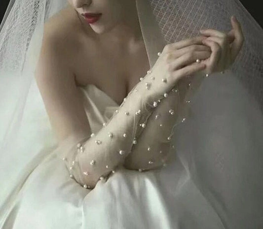 Long Sheer Wedding Gloves with Pearls