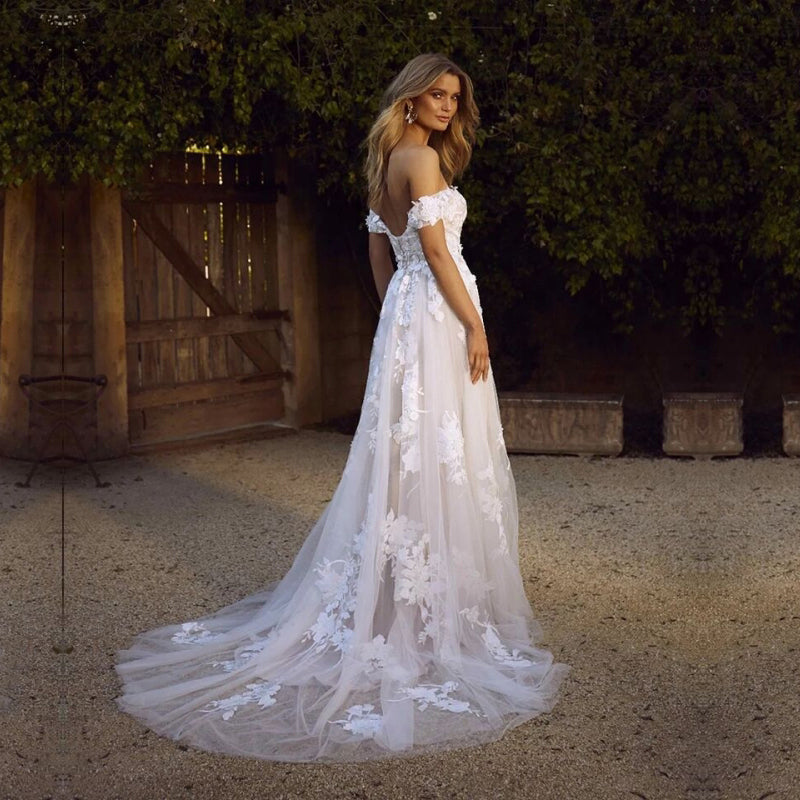 Lace Wedding Dresses 2020 Off the Shoulder Appliques A-Line Bride Dress Princess Wedding Gown Bridal robe de mariee